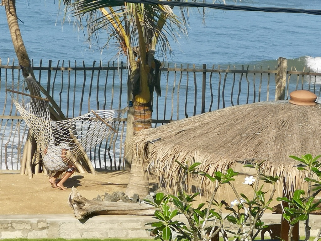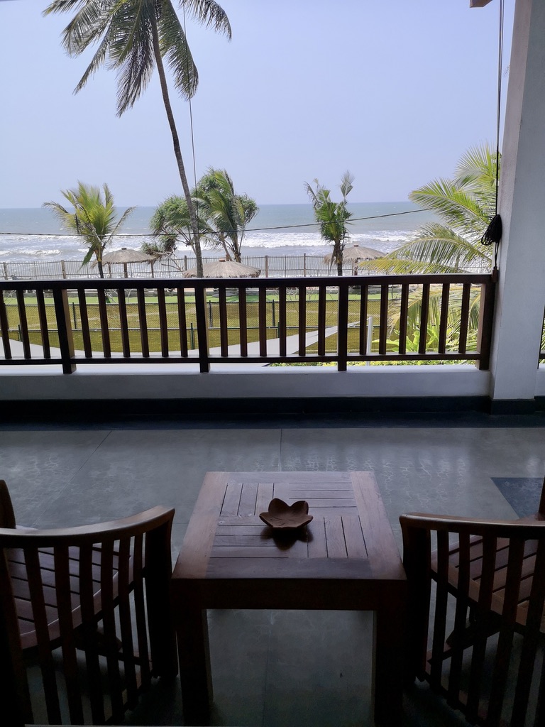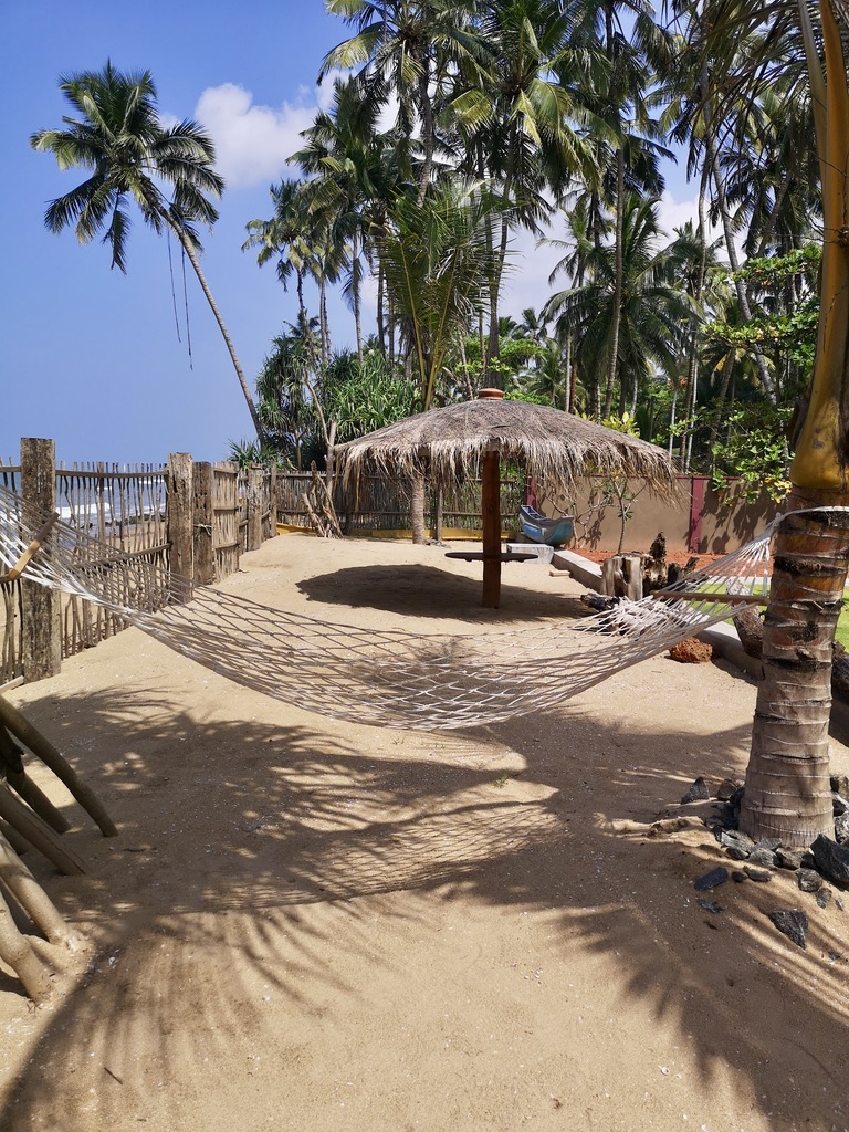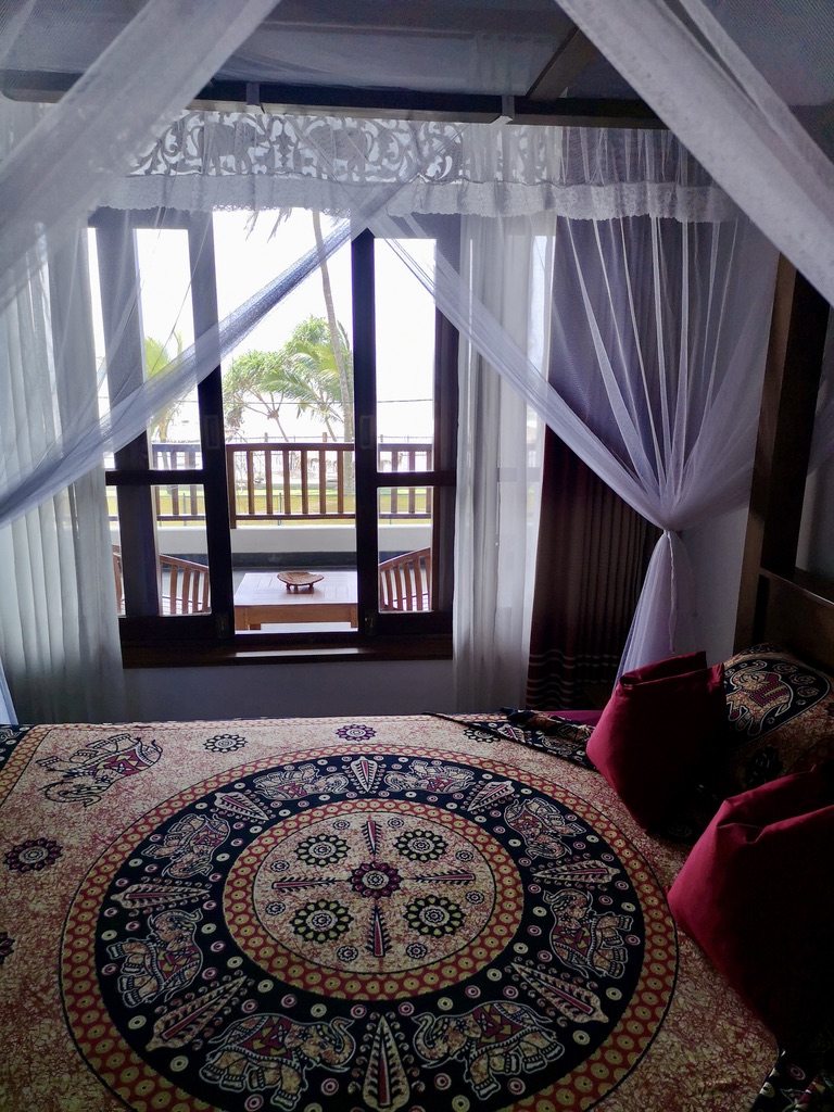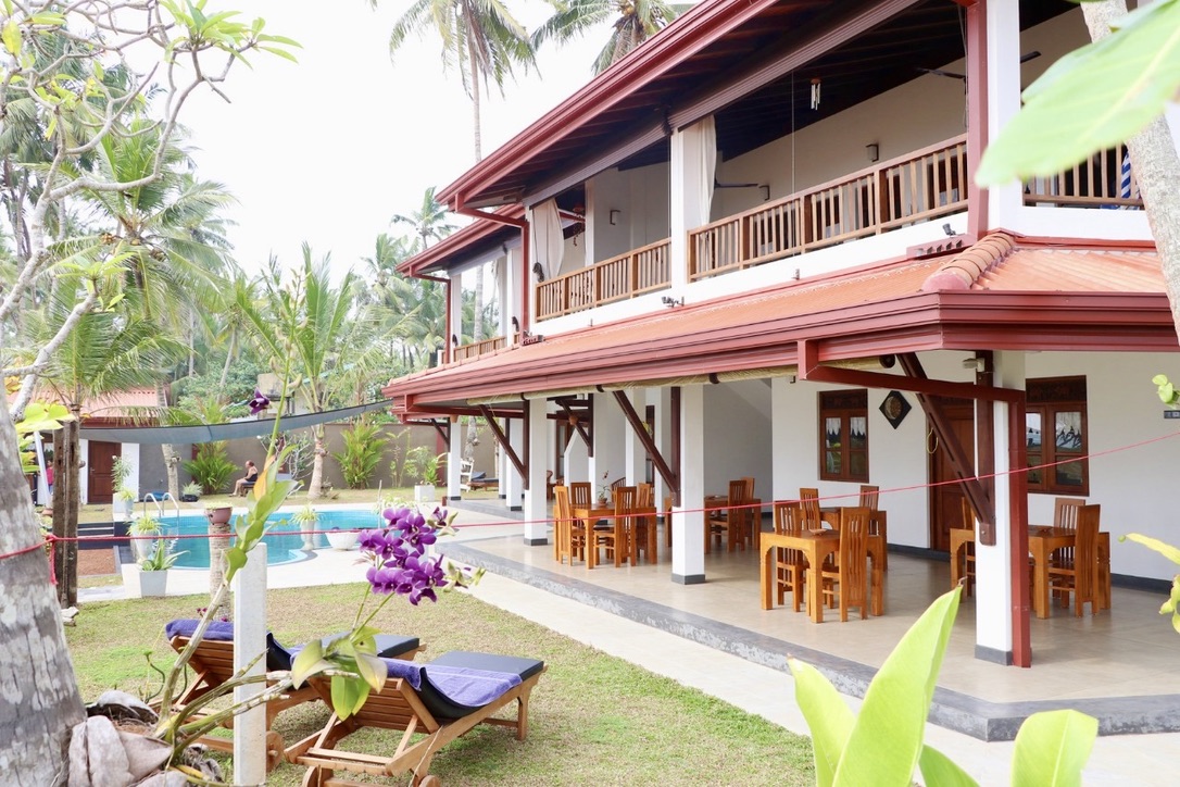The Thoduwawa Beach Villa has four nicely furnished double rooms with a large bathroom, air conditioning and private seating or balcony, all furnished with local teak wood.
