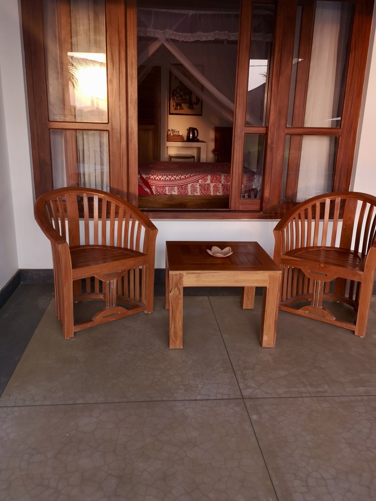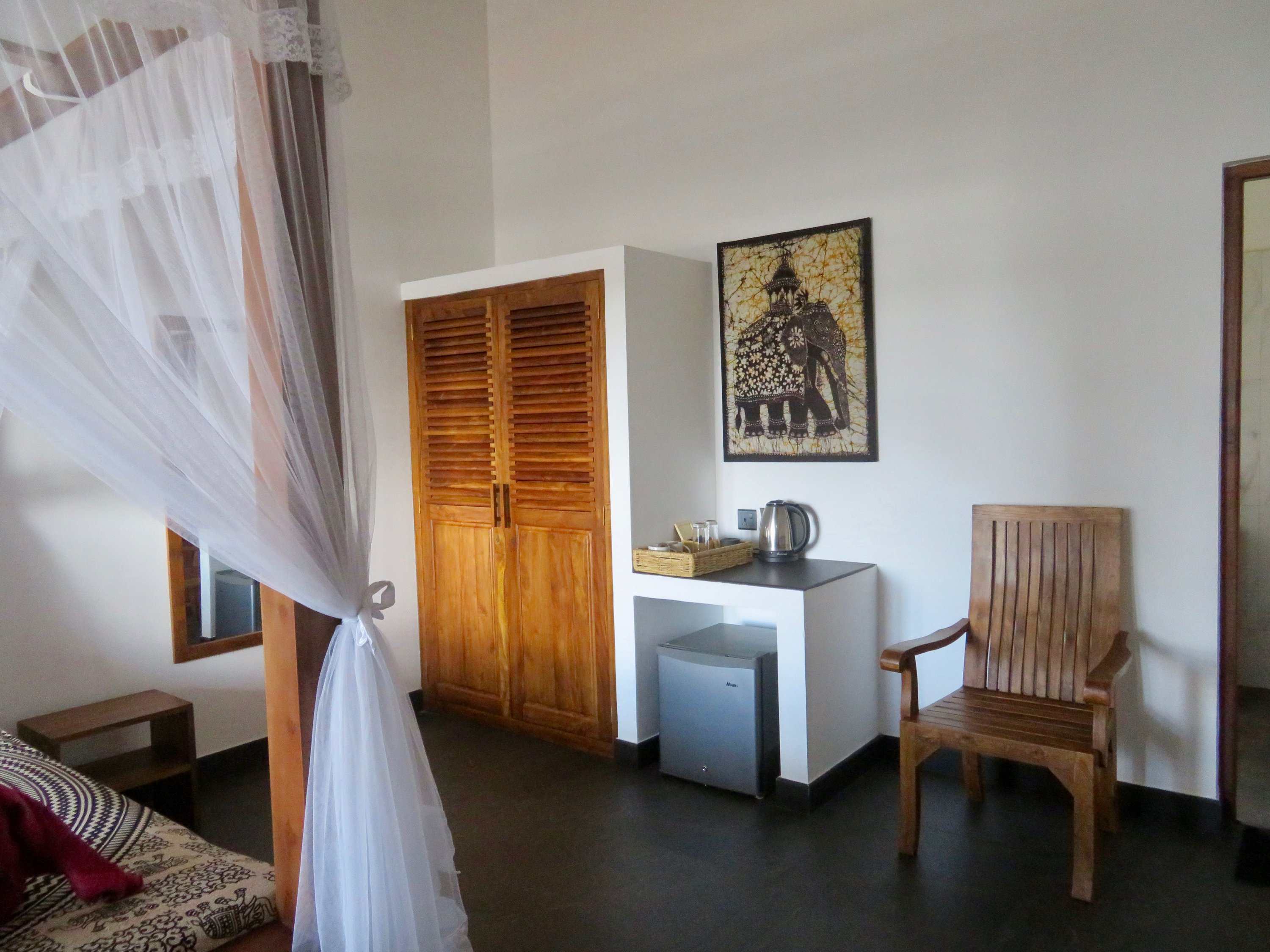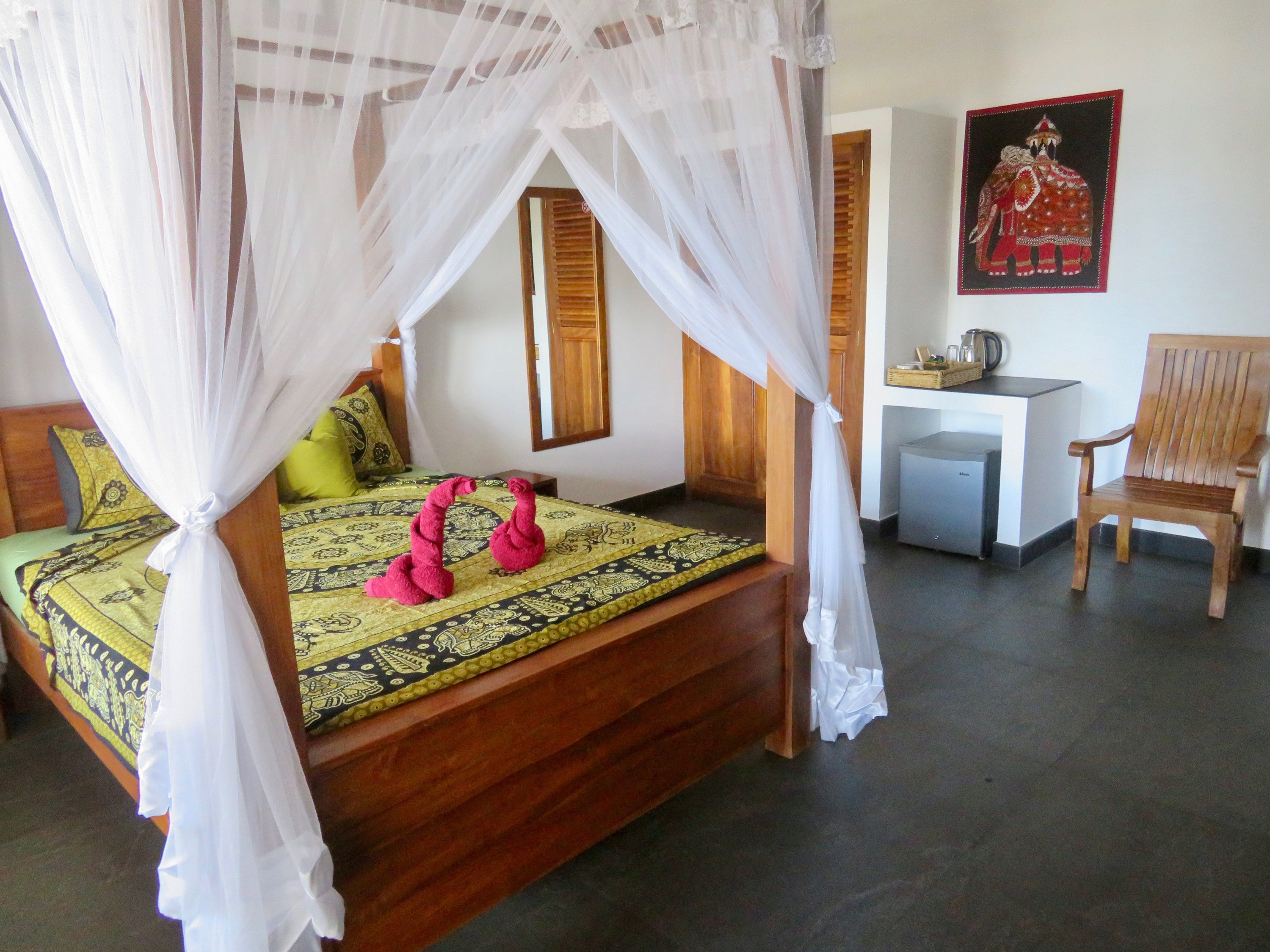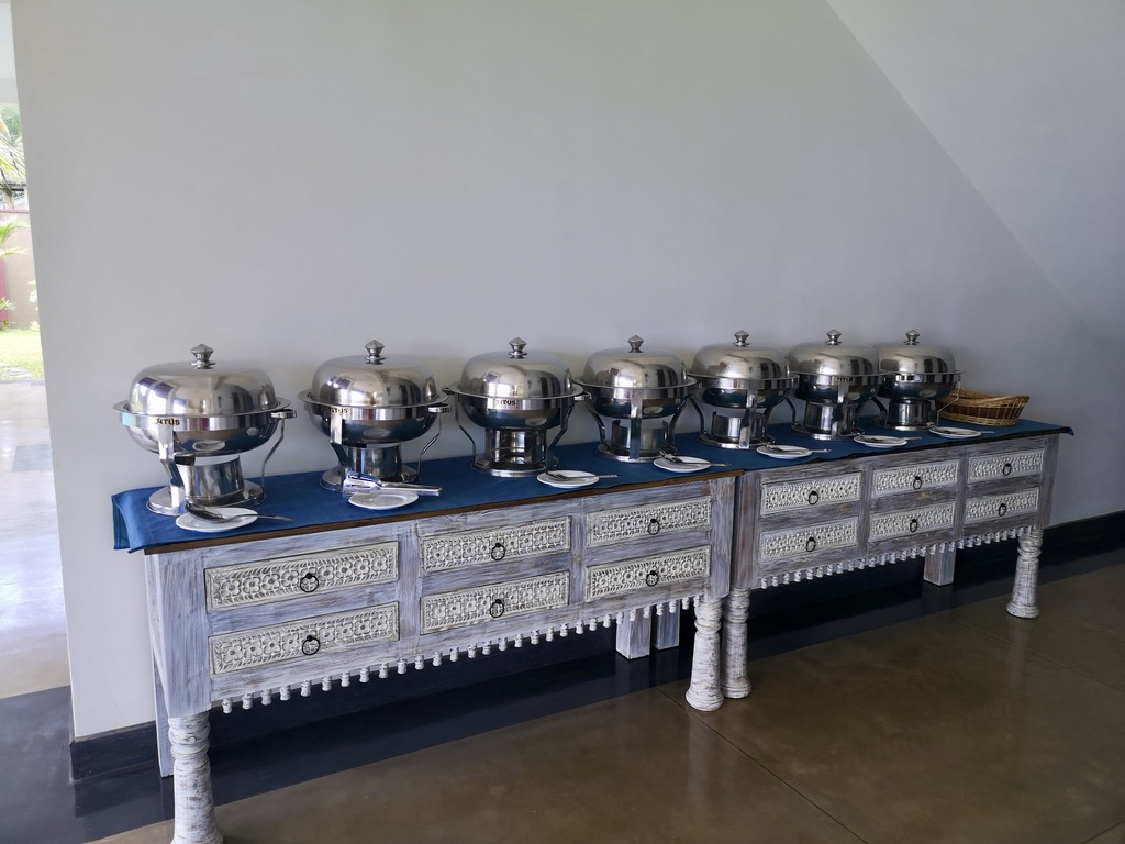 The Thoduwawa Beach Villa has four nicely furnished double rooms with a large bathroom, air conditioning and private seating or balcony, all furnished with local teak wood.